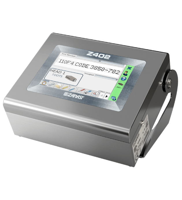 Z402 es un sistema diseñado para garantizar un rendimiento uniforme y constante incluso en entornos de producción particularmente difíciles. Puede conducir hasta 2 cabezales NZ, 1 de 16 puntos o 2 de 7 puntos, con una serie de fuentes y matrices esenciales para obtener impresiones de alta calidad hasta 2 líneas con una altura de entre 5 y 60 mm, en el lado, en la parte superior y en la parte inferior del embalaje.